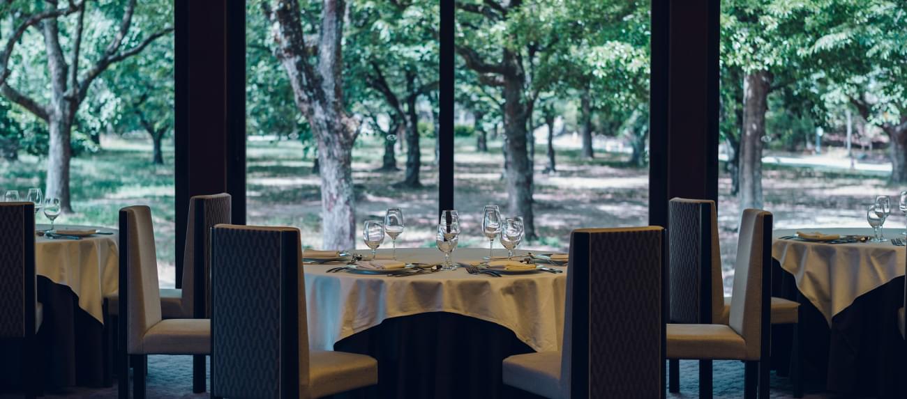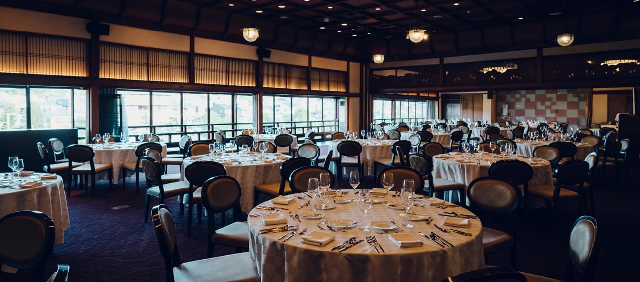 HEIAN JINGU SHRINE Restaurant & Banquet Hall is located within the shrine grounds of the "Heian Jingu Shrine", one of the most famous and prestigious shrines in Japan that was built in 1895 for the 1,100th anniversary of the relocation of the capital city to Heiankyo. The interior boasts traditional Japanese architectural features while you can enjoy an amazing panorama view of the scenic "Shin'en Garden" that spreads outside the window.