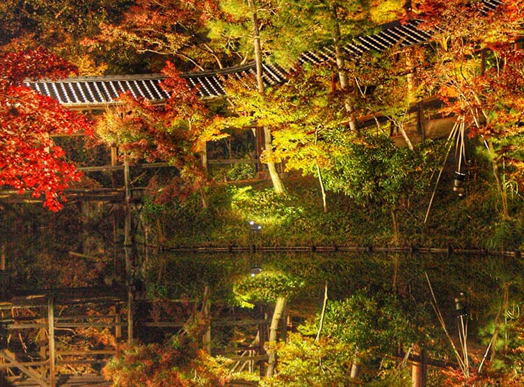 高台寺にはかつて豊臣秀吉が伏見城で月見をしたといわれている観月台が移築されており、秋には「観月茶会」が行われます。湖月庵でお抹茶とライトアップされたお庭をお愉しみください。