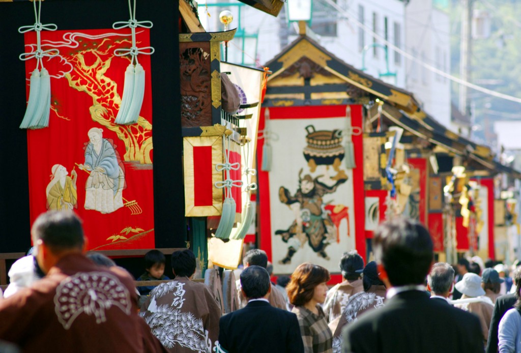 200年以上も前から続く、いで湯の繁栄を祈願する四所神社の秋の祭礼。太鼓と鐘の響き、そして迫力満点の競り合いが見る者の胸を躍らせます。