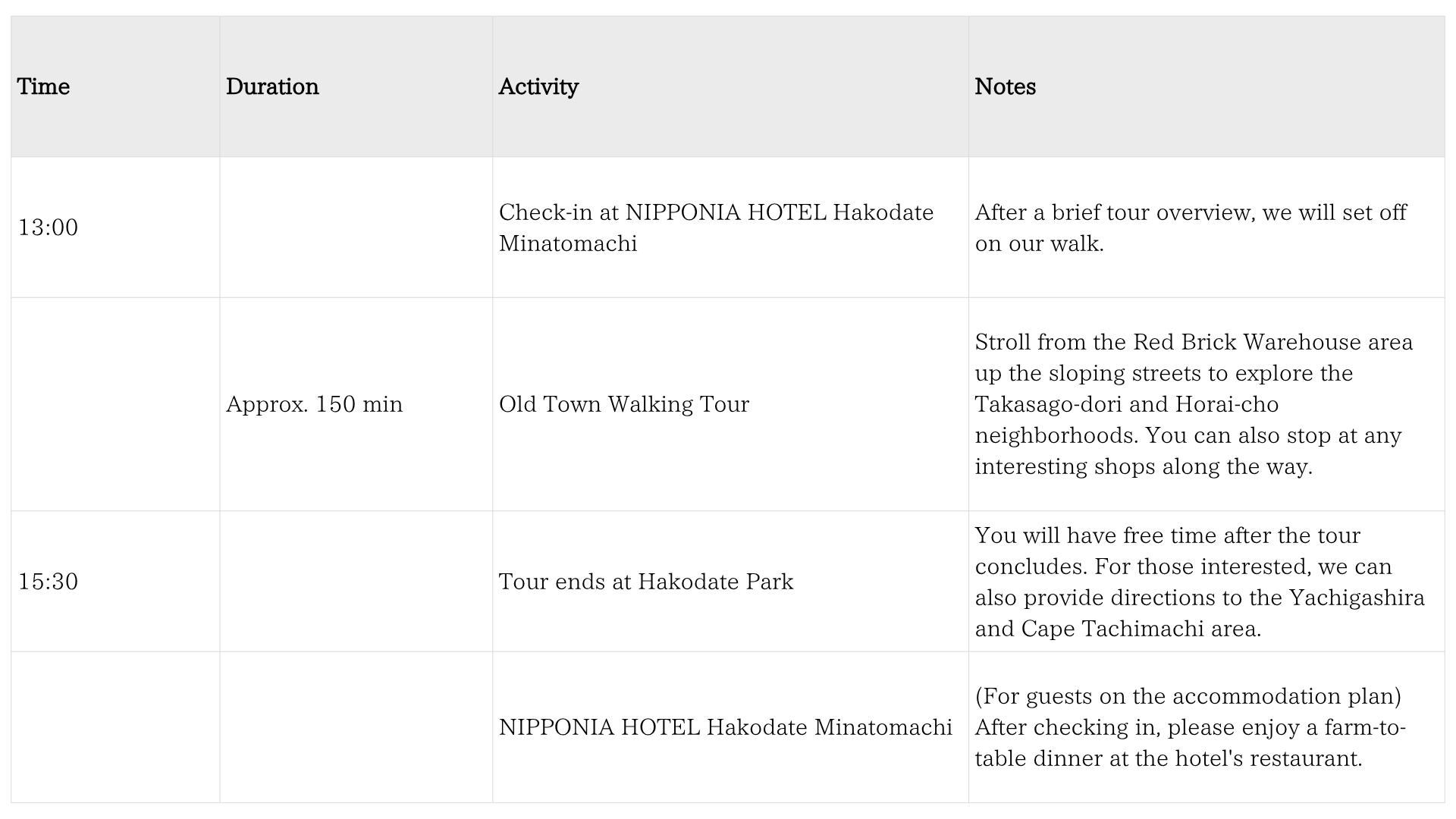 An Exclusive Tour with a Local Guide: A local guide who loves Hakodate will reveal the city’s charms from a resident’s unique perspective.