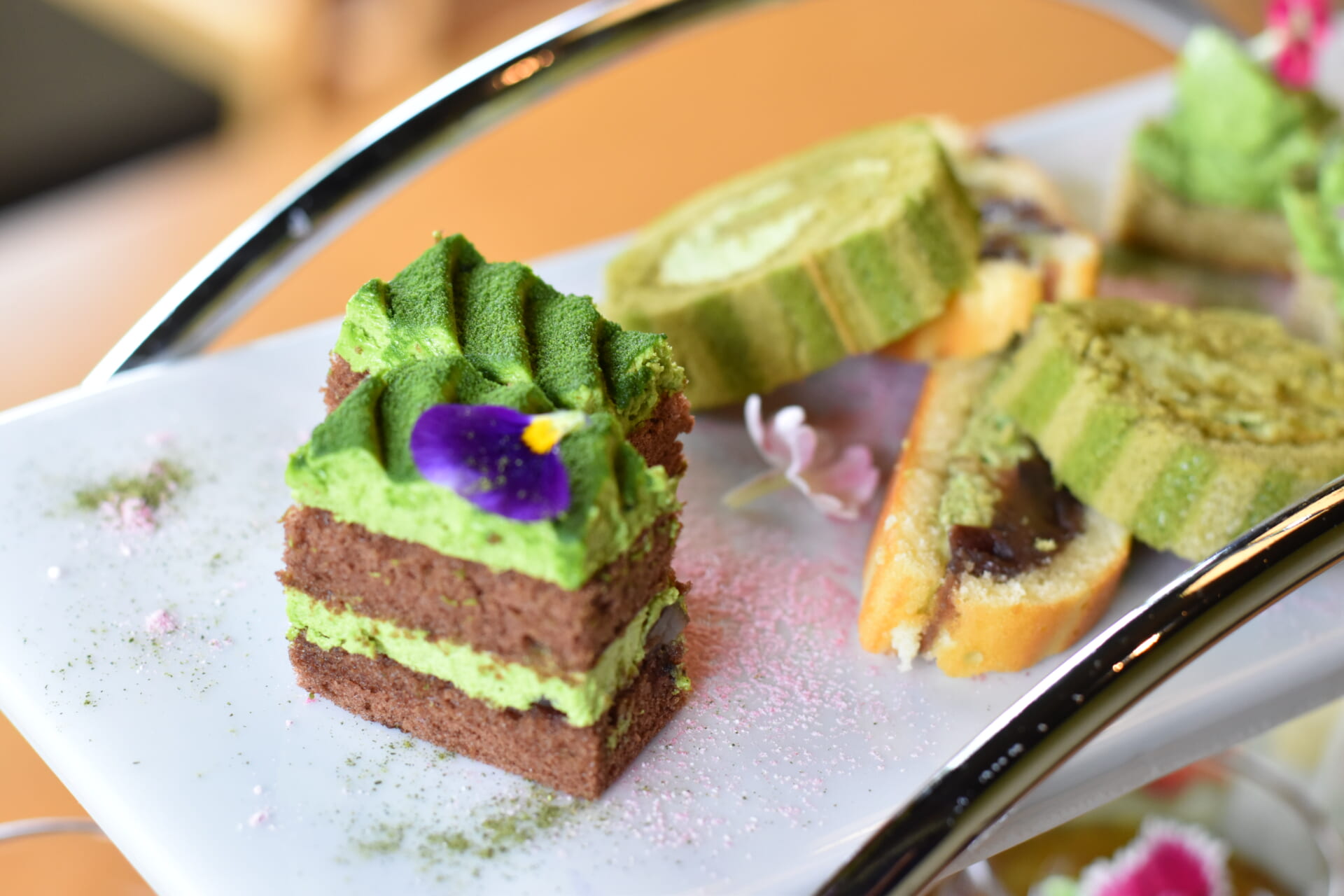 抹茶と梅の魅力を生かした繊細で美しいセイボリー&スイーツとともに