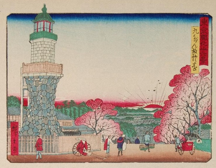高燈籠は明治新政府の威信を示すために、夜も明るく灯されていました。九段坂はもちろん、夜の東京湾からも見えるほどで、灯台としても使われていたそうです。高燈籠は1930年に現在ある場所に移設され、九段坂もこの頃にコンクリートで舗装されました。