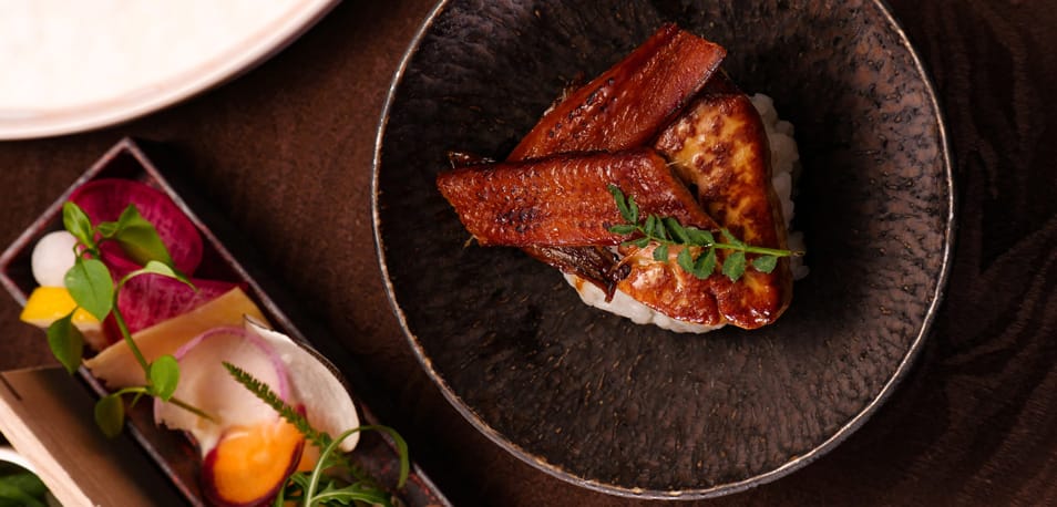 滋味豊かな瀬戸内の食材の数々を、瀬戸内の海や山の恵みを丁寧に調理して仕立てたお料理は目にも舌にも美味しい一皿の数々。竹原のブランド牛「峠下牛」と海の幸、山の幸をはじめ、職人のこだわりが詰まった食の宝庫、この土地ならではの豊富な食材を活かしたお料理を地域の銘酒とともに愉しんでいただけます。